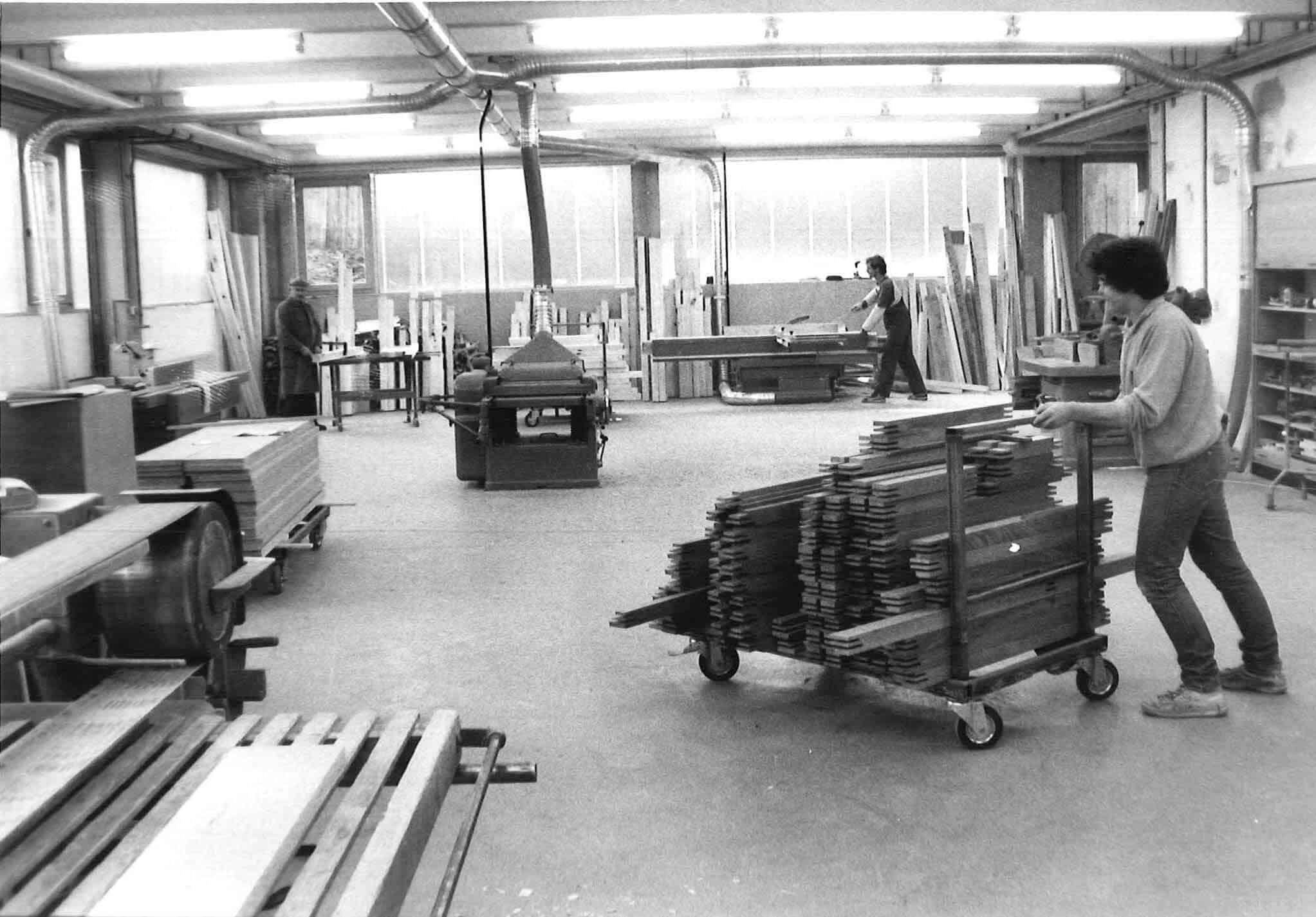1984 Neubau der modernen Werkstatt und Reorganisation des Unternehmens. Suche und Einstellung von Möbelschreinern begann…